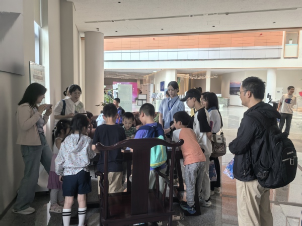 接着,孩子们来到图文信息中心的图书馆。静谧的阅读环境和浩瀚的书籍海洋让他们沉浸其中,仿佛置身于知识的宝库。尤其是图书馆内那独具特色的全能艺术台,以水代墨、屏代纸,集琴棋书画中华传统四艺于一体,引得孩子们纷纷踊跃尝试,在游戏中感受传统文化的魅力。