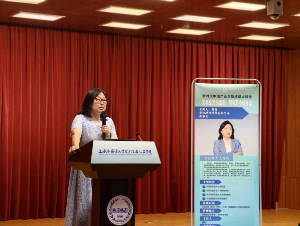 讲座伊始,刘总结合其高考、从事新闻工作再到成功创业者的亲身经历,她表示,尽管职业形态、技能需求和竞争逻辑正经历剧变,但文科生所独有的语言能力、深度思维和创造力这“三不变”核心能力,恰恰构成了AI难以逾越的“护城河”,AI无法替代人类对情感的深度共情、对文化的精准解码以及批判性思维与故事力。
