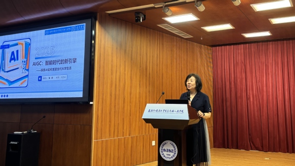 讲座伊始,张教授首先从理论层面阐述了AIGC的概念及其在智能时代的重要性。她指出,AIGC以数据、算法和算力为三大技术支柱,正深刻改变着内容生产、行业创新和人才培养模式。在教育领域,AIGC不仅能够优化教学资源,还能为学生提供个性化学习支持,推动高等教育向智能化、高效化方向发展。