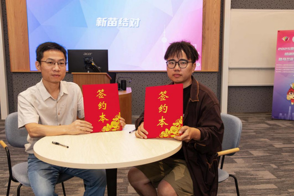 为了给学员们的创业之路提供更有力的支持与保障,活动现场还特别设置了“新苗结对”环节。马兰花讲师代表江落成老师与优秀学员代表韩晨同学共同登台,郑重地签署了结对协议。通过这种一对一的结对指导,优秀学员们将在后续的创业实践中获得更加精准、更具针对性的指导与帮扶,助力他们在创业的征程中稳步前行,茁壮成长。