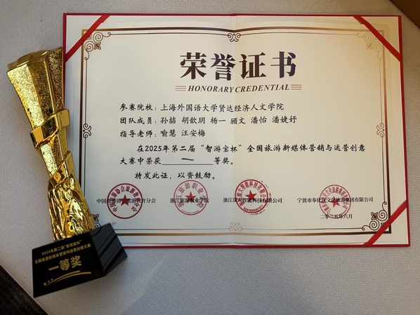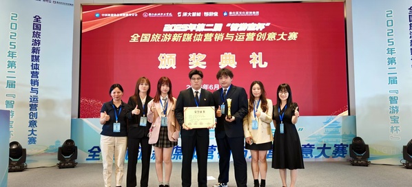 6月7日,在2025年第二届“智游宝杯”全国旅游新媒体营销与运营创意大赛决赛中,taptap数字文旅学院学生孙喆、胡歆玥、杨一、顾文、潘婕妤、潘怡六位学子,以“情绪营销直播”创新方案,从全国含985、211院校在内的600余支劲旅中突出重围,一举斩获全国一等奖!