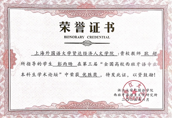 阎语同学表示,这次参赛经历让她体会到学术研究的艰辛与乐趣,也让她对西班牙语专业与中华传统文化传播有了更深的理解。