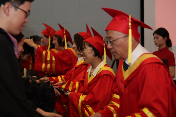 学位授予仪式在二级学院院领导主持下展开,校领导为毕业生拨穗正冠,并颁发学位证书。