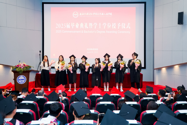 6月20日上午,上外贤达学院2025届毕业典礼暨学士学位授予仪式在虹口校区行政楼报告厅举行。校党政领导班子全体成员出席本次典礼。各二级学院党政领导、相关职能部门负责人、教师代表、校友代表、毕业班辅导员、毕业生家长代表和2025届毕业生代表参加典礼。毕业典礼由副校长陈应主持。