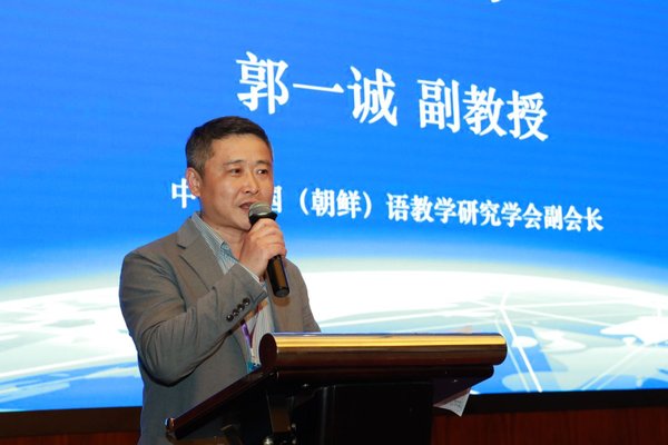 副会长高陆洋教授代读中国韩国(朝鲜)语教学研究学会会长全永根教授开幕辞。全永根会长在致辞中指出,数字化浪潮下,朝鲜语教育的信息化、数字化、智能化转型刻不容缓,需主动拥抱多学科交融,推进课程建设与创新。他期待与会者围绕“新文科背景下的朝鲜语专业建设”和“科研成果赋能教学实践”两大核心议题,探索教育与跨学科知识的融合路径。