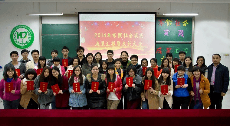 全体合影 3月10日晚,我院健康与护理系2014年寒假社会实践活动成果汇报暨表彰大会顺利召开。学院党委副书记、副院长唐燕,学工部副部长乔华锋,健康与护理系主任方海云及系全体师生参加了本次大会。 主任寄语:重实践,...