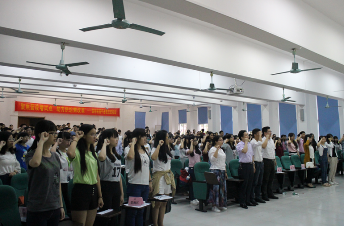 5月17日,由党委学生工作部主办的十周年院庆志愿者动员大会在5教105顺利举行。党委学生工作部常务副部长乔华锋、学生管理科科长马思伟老师、各系辅导员及200名院庆志愿者出席了本次大会。 在动员讲话中,乔华锋老师首先感谢在场志愿者同学们的勇于付出,...