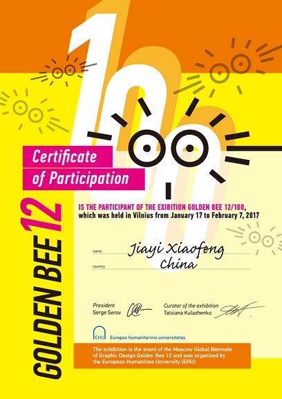 近日,艺创系陈笑峰老师收到 GoldenBee exhibition(金蜜蜂平面设计双年展) 主席寄送的参展证书,其指导的吴家宜同学作品由GoldenBee评审推荐,1月17至2月7日在Vilnius(维尔纽斯)参加平面设计展,此次展览由European ...