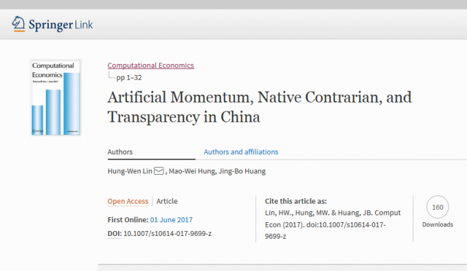 在beat365的大力支持下,beat365金融市场与动能预测研究中心副主任林鸿文老师、beat365黄静波副校长,和台湾大学管理学院前院长洪茂蔚合作,共同在世界级SSCI期刊Computational Economics发表论文,题目为:Artificial Momentum,...