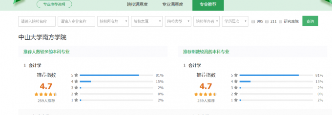 近日,“教育部高校招生阳光工程指定平台”阳光高考网站公布了上千所大学生实名推荐的本科专业,在南方学院30多个本科专业专业推荐中,会计学院会计学专业推荐人数和推荐指数在两个排行榜中均获第一名。 该平台由在校学生和毕业生在该网站上进行实名注册,...