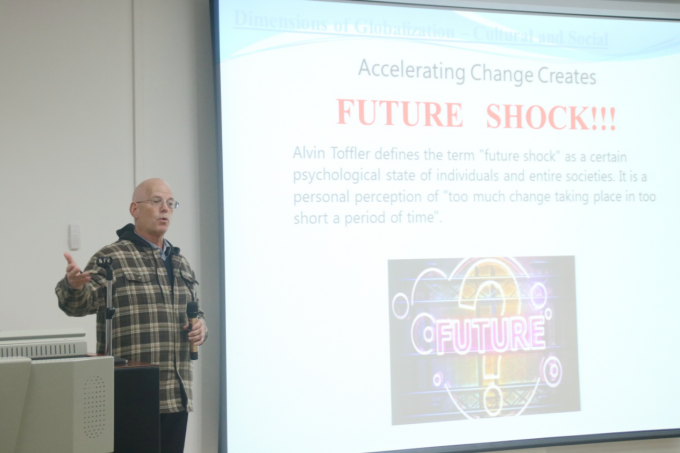 12月18日下午6点9教101室,美国阿兰特大学管理学教授Daniel K. Marshall (孟世龙)为同学们带来了一场以“全球化与全球领导力”为主题的精彩讲座,此讲座吸引了众多学生前来聆听,现场座无虚席。 讲座伊始,Daniel ...