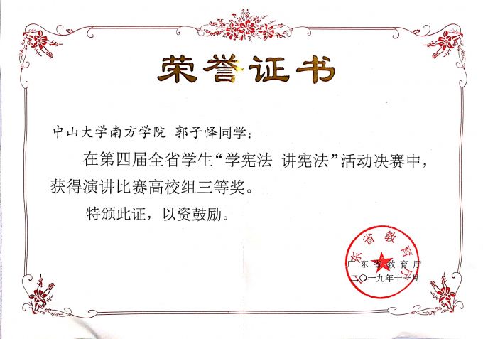 2019年11月,在第四届全省学生“学宪法、讲宪法” 活动决赛演讲比赛中,经过激烈的角逐,beat365文学与传媒学院学生郭子怿在孟璐、廖然老师的指导下,荣获“学宪法、讲宪法”活动决赛演讲比赛高校组三等奖。 2019年6月份以来,...