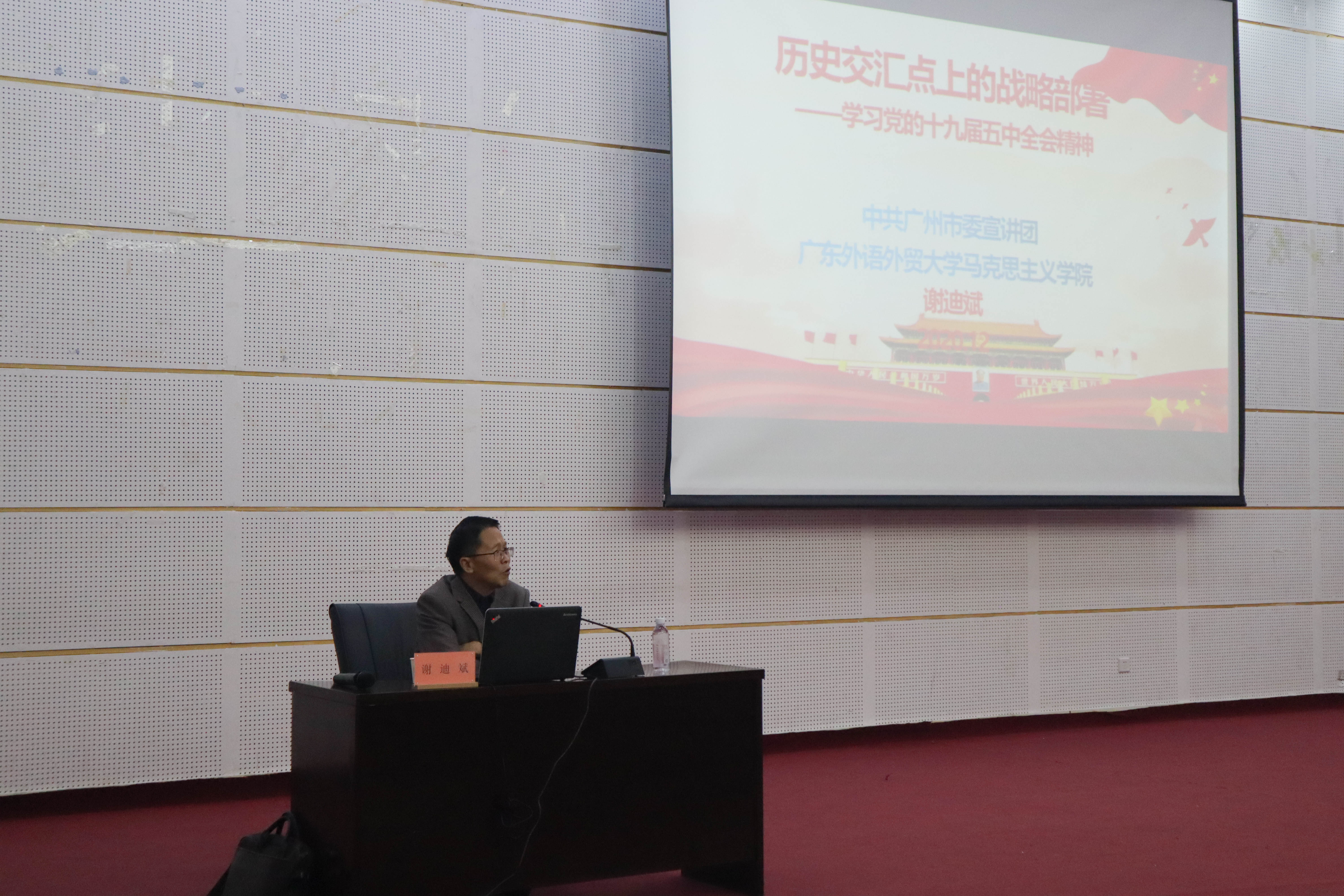 12月15日,南方论坛第118期在学校图书馆学术报告厅举行,主题是“解读党的十九届五中全会精神”,由中共广州市委宣讲团成员、广东外语外贸大学马克思主义学院院长谢迪斌教授主讲。 (中共广州市委宣讲团成员、...