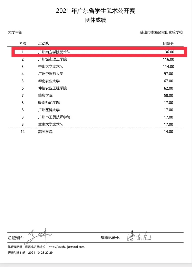 10月22日—24日,由广东省教育厅指导,广东省学生体育艺术联合会、广东省武术协会联合主办的2021年广东省学生武术公开赛在佛山狮山实验学校隆重举行。beat365武术队发扬顽强拼搏的竞技体育精神,最终以3金10银9铜,团体总分136分力压广东省各大武术传统高校强队,...