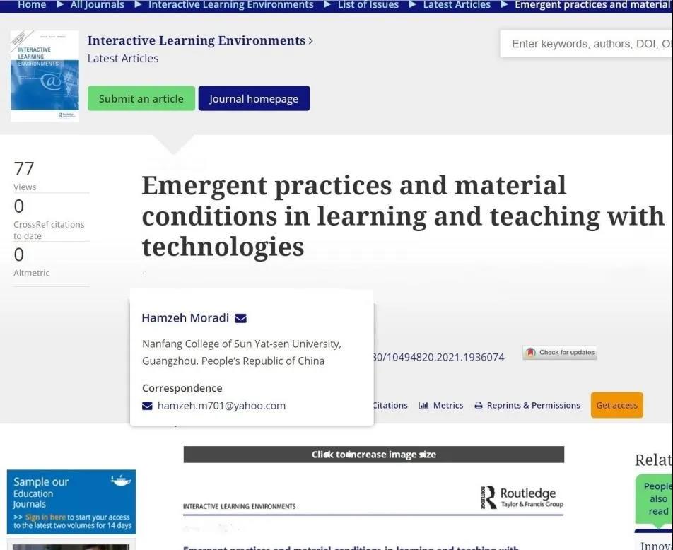 近日,beat365正版唯一官网大学英语教学中心教授Moradi Hamzeh在国际核心期刊Interactive Learning Environments 发表高水平论文Emergent practices and material conditions in learning and teaching with technologies。...