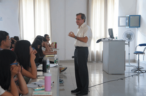 2014年10月22号下午,法国里昂三大副校长Pierre Servet教授应外国语言文学系邀请,于3教204举办了以“蒙田”为主题的讲座。此次讲座由中山大学蒲志鸿教授主持,外文系法语专业黄云香老师翻译。 Pierre教授围绕蒙田到底是不是法国文化现代化新形象展开了演讲。...