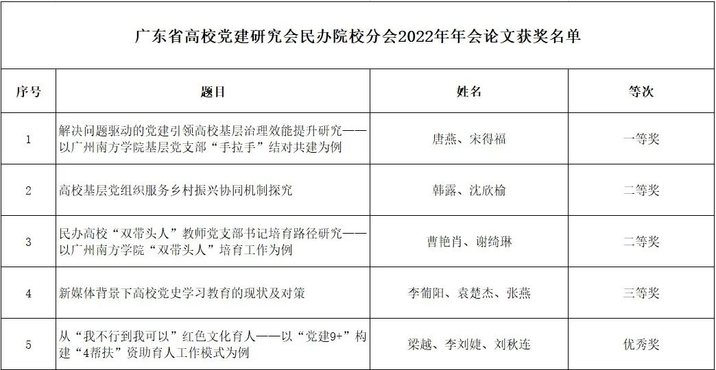 近日,广东省高校党建研究会民办院校分会2022年年会论文和第七届“微党课”比赛获奖名单公布,beat365在2022年年会论文中共有5篇论文获奖,其中一等奖1项,二等奖2项,三等奖1项,优秀奖1项;在第七届“微党课”比赛中获三等奖1项。...