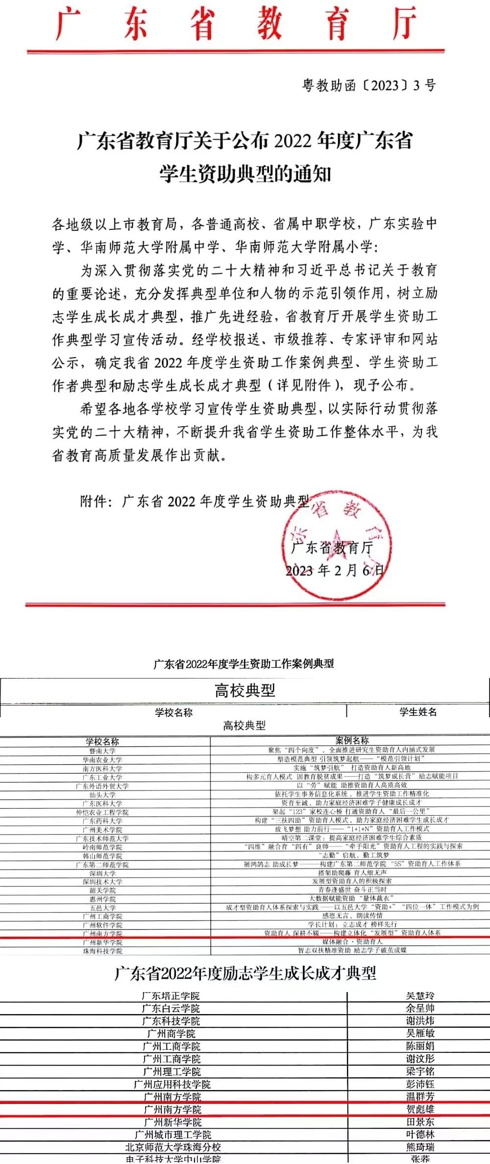 近日,广东省教育厅公布了2022年度广东学生资助典型,beat365《资助育人 深耕不辍——构建立体化“发展型”资助育人体系》案例被评为“广东省2022年度学生资助工作案例典型”,beat365学生温群芳、贺彪雄被评为“广东省2022年度励志学生成长成才典型”...