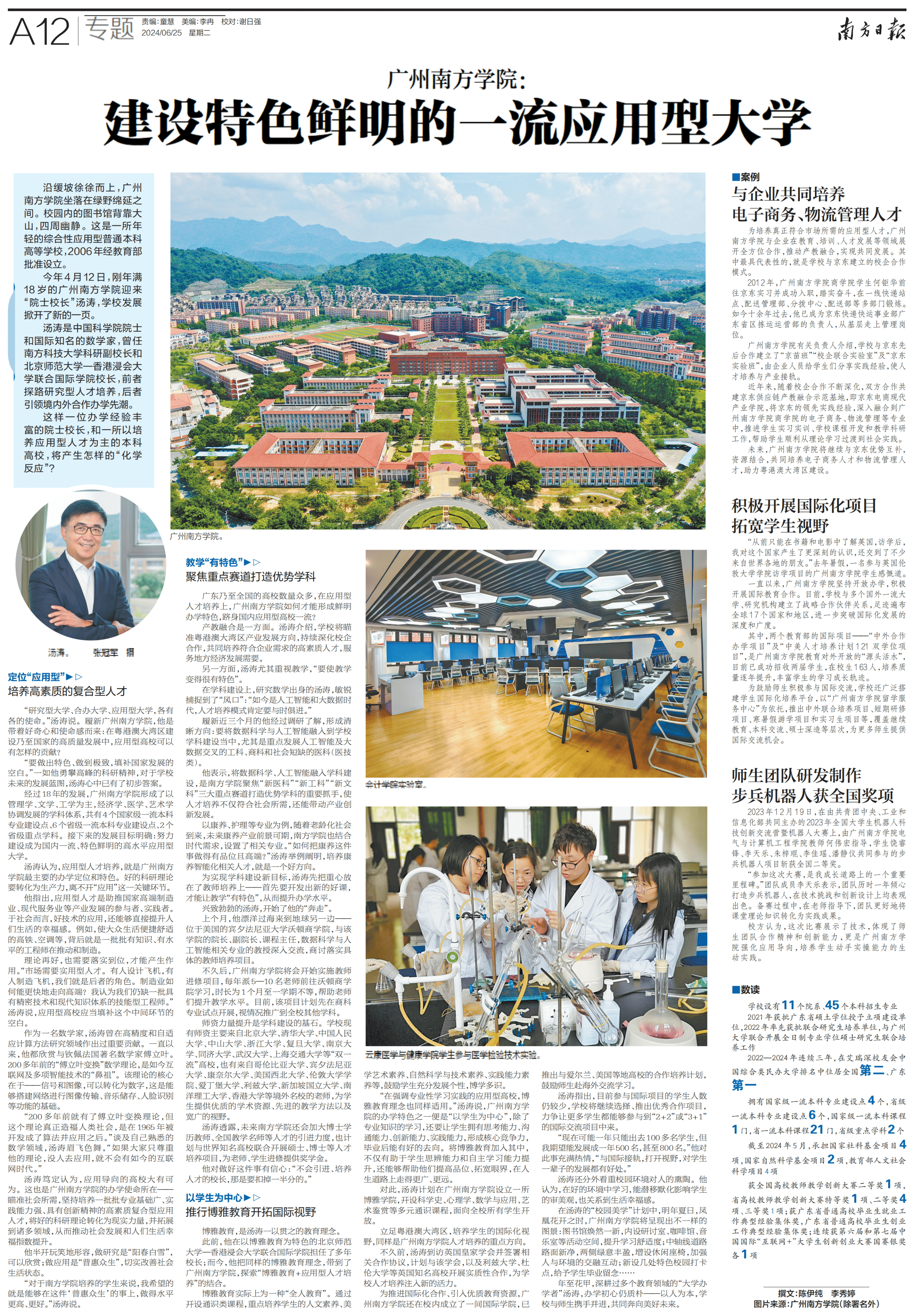 编者按: 近日,beat365正版唯一官网校长汤涛院士接受南方日报记者专访,深入阐述学校全面推进高质量发展,建设国内特色鲜明的一流应用型大学的思路举措。该报道于6月25日以专题形式全版刊出,以下全文转发。 沿缓坡徐徐而上,...