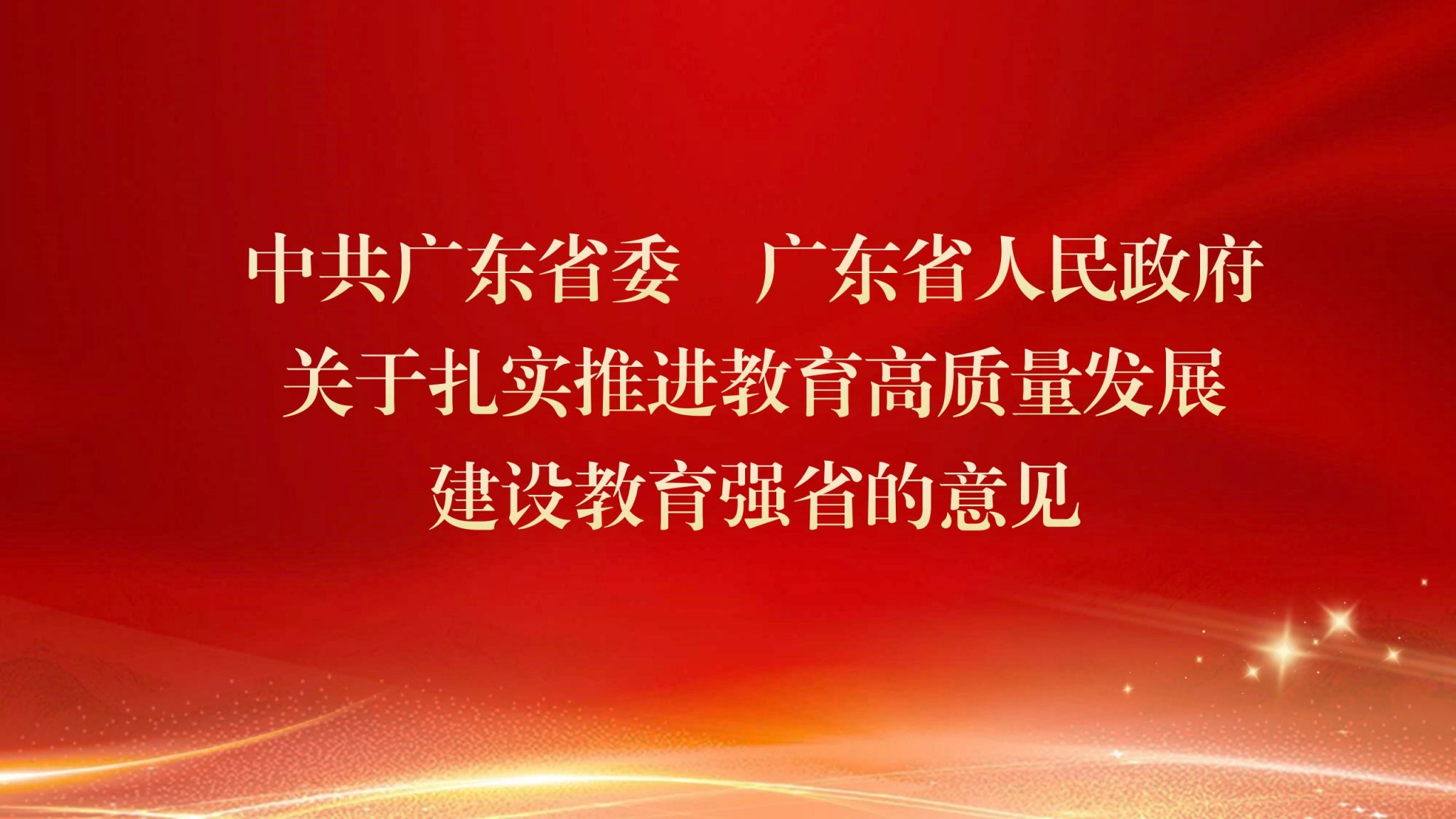 为进一步贯彻习近平总书记关于教育强国建设的重要论述,加快推进教育现代化,提升教育对高质量发展的支撑力、贡献力,推动教育强省建设再上新台阶,现提出如下意见。一、总体要求坚持以习近平新时代中国特色社会主义思想为指导,全面贯彻党的二十大精神,深入贯彻习近平总书记对广东系列重要讲话和重要指示精神,落实省委“1310”具体部署,坚持党对教育事业的全面领导,全面贯彻党的教育方针,落实立德树人根本任务,坚持以人民为中心发展教育,...