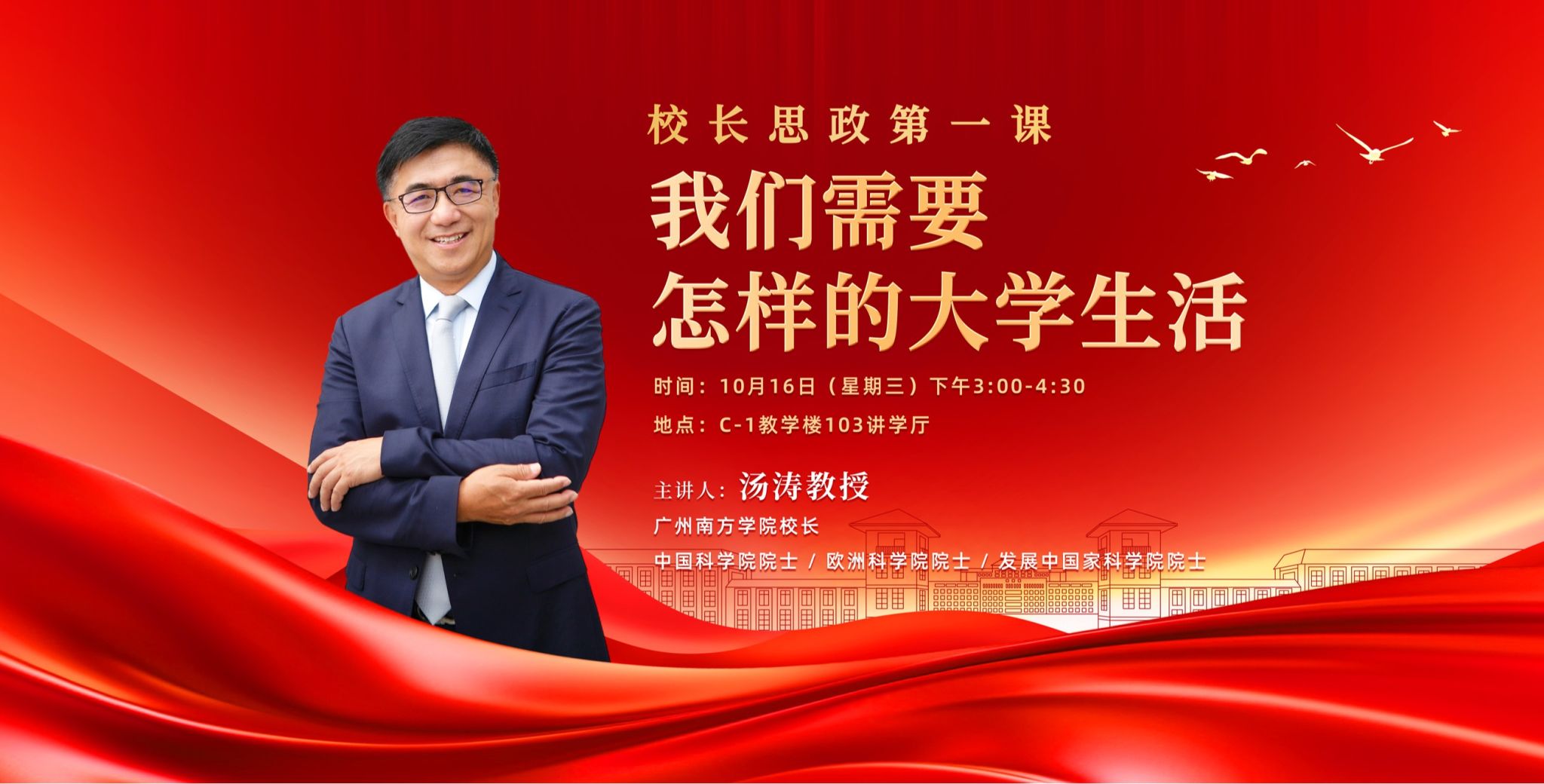 讲座主题校长思政第一课——我们需要怎样的大学生活讲座信息时间:2024年10月16日(星期三)15:00-16:30地点:C-1教学楼103讲学厅主讲人简介汤涛,beat365正版唯一官网校长,计算数学家、中国科学院院士、欧洲科学院院士、发展中国家科学院院士,1984年毕业于北京大学数学系,1989年获得英国利兹大学博士学位,曾担任香港数学会理事长,香港浸会大学研究生院院长、理学院院长,2015-2019年担任南方科技大学副校长,2019-2024年担任北京师范大学—...