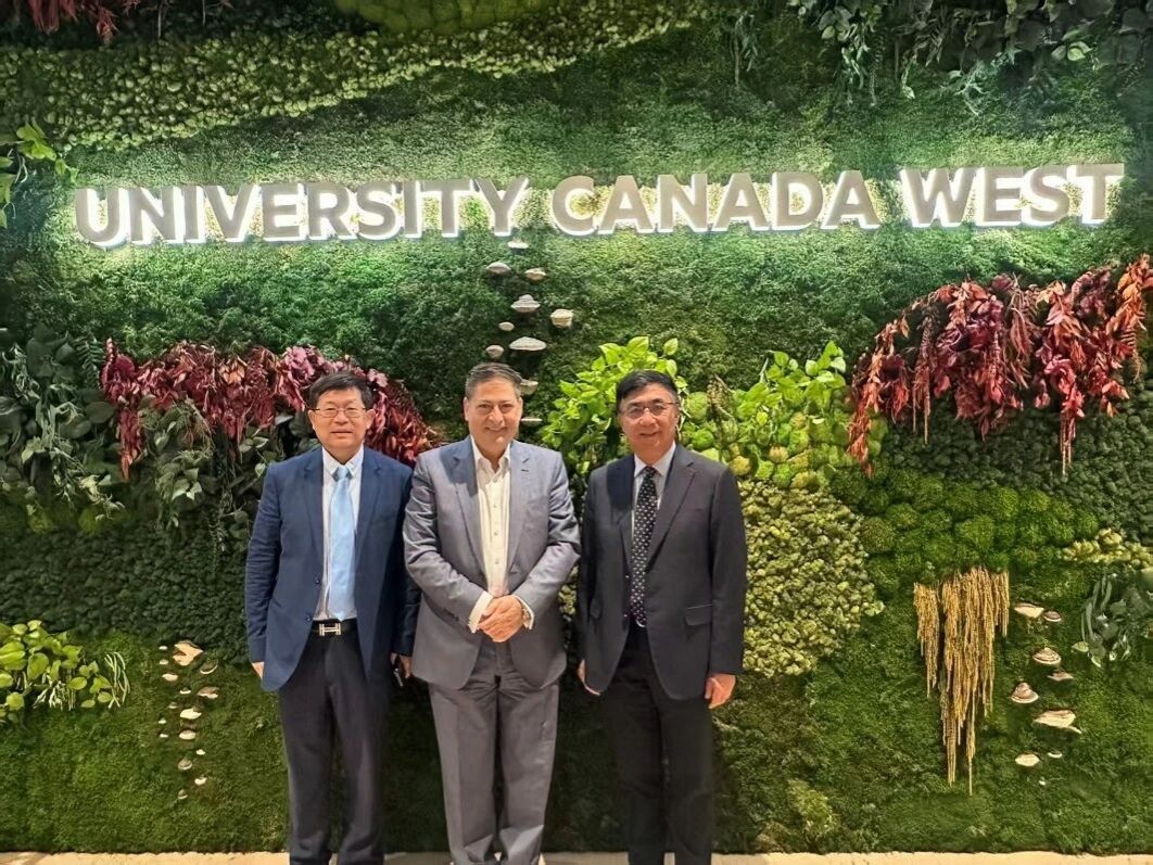 此前,10月3日,汤涛校长与刘文斌副校长访问了位于温哥华的加西大学(University Canada West,简称 “UCW”)。加西大学成立于2004年,是一所聚焦商业与科技领域的大学,其工商管理硕士项目特色鲜明。学校课程注重创新思维培养,为应对当今经济和社会挑战提供国际化视角。访问期间,加西大学校长Bashir Makhoul向汤涛校长一行详细介绍了学校的发展历程、学科特色及国际合作经验。双方就学生联合培养达成初步协议。