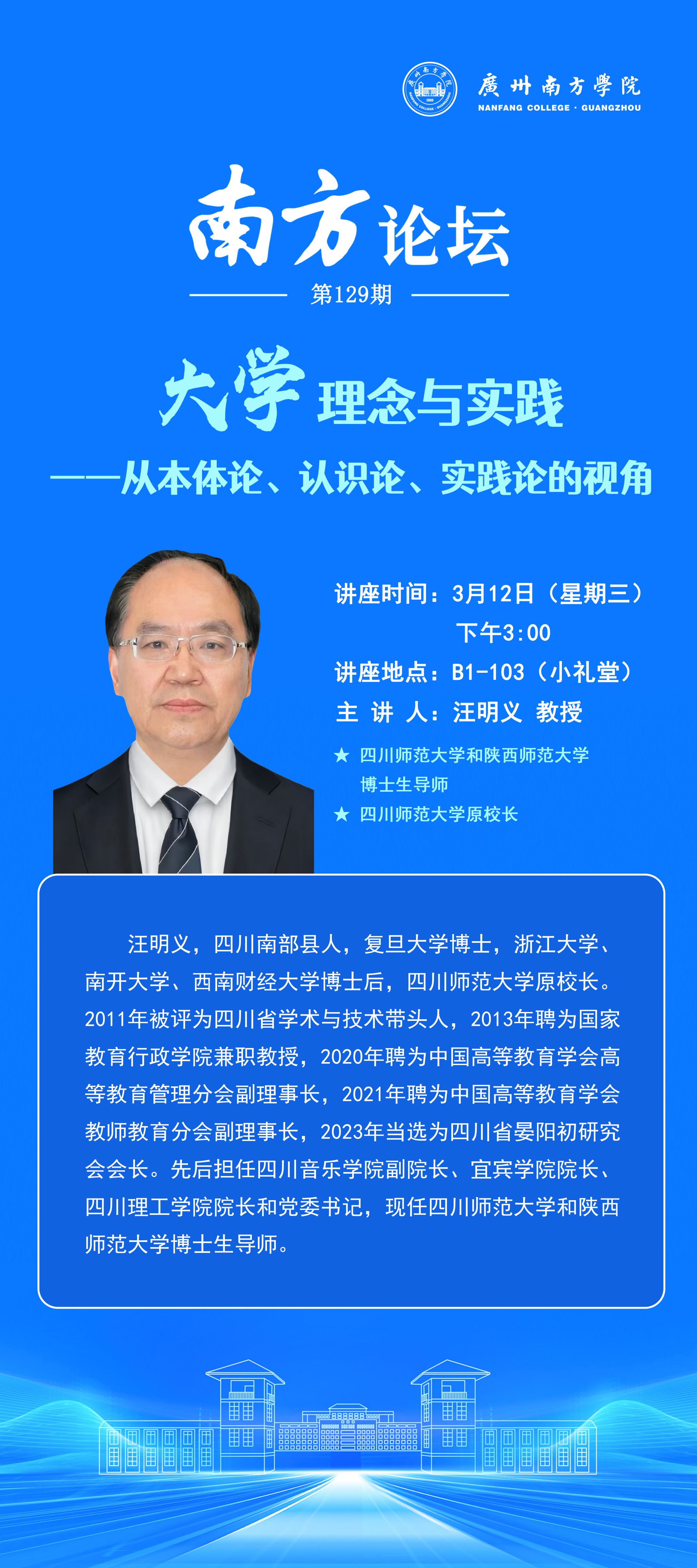 “大学理念与实践——从本体论、认识论、实践论的视角”专题报告暨南方论坛第129讲