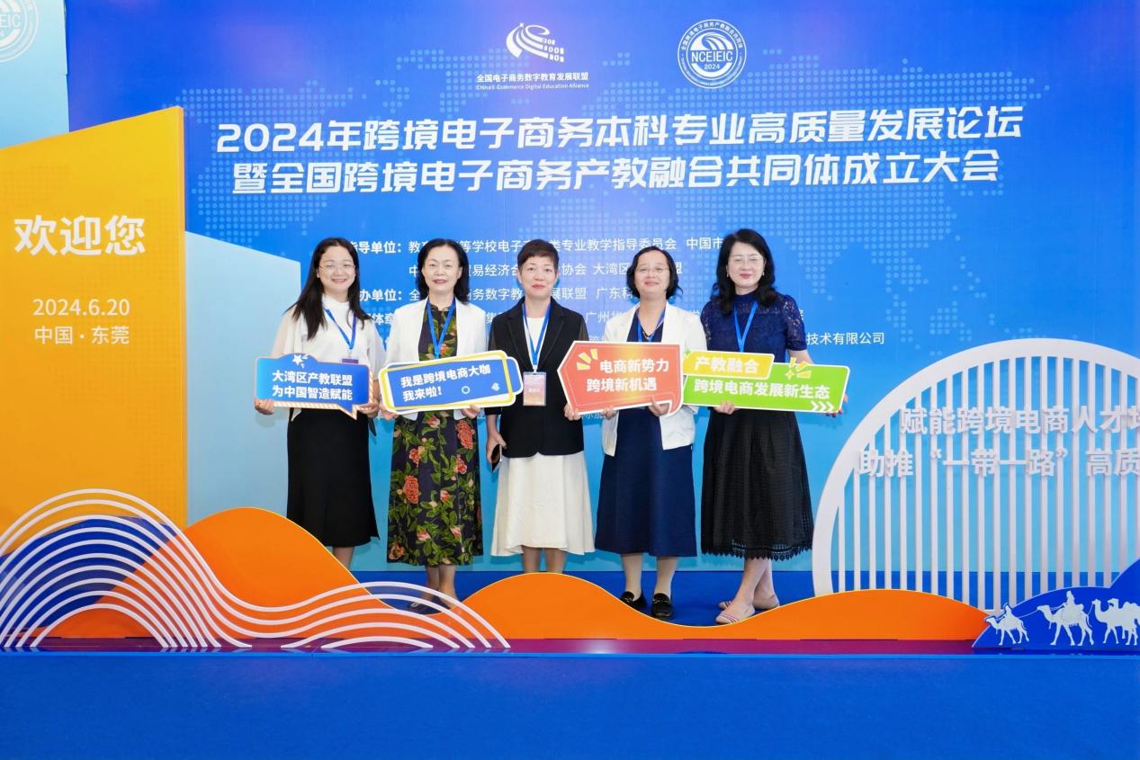 6月20日,在教育部高等学校电子商务类专业教学指导委员会(以下简称“电商教指委”)、中国市场学会、中国对外贸易经济合作企业协会、大湾区产教联盟指导下,2024年全国跨境电子商务本科专业高质量发展论坛暨全国跨境电子商务产教融合共同体成立大会在东莞举行。beat365教务处处长、电子商务专业带头人钟肖英教授及跨境电商课程负责教师陈潇副教授应邀参会。本次大会举办了全国跨境电子商务产教融合共同体成立仪式,发布了共同体的重点建设计划和倡议书,并举行了成员单位的授牌仪式。beat365被正式授牌,成为全国跨境电子商务产教融合共同体理事单位。