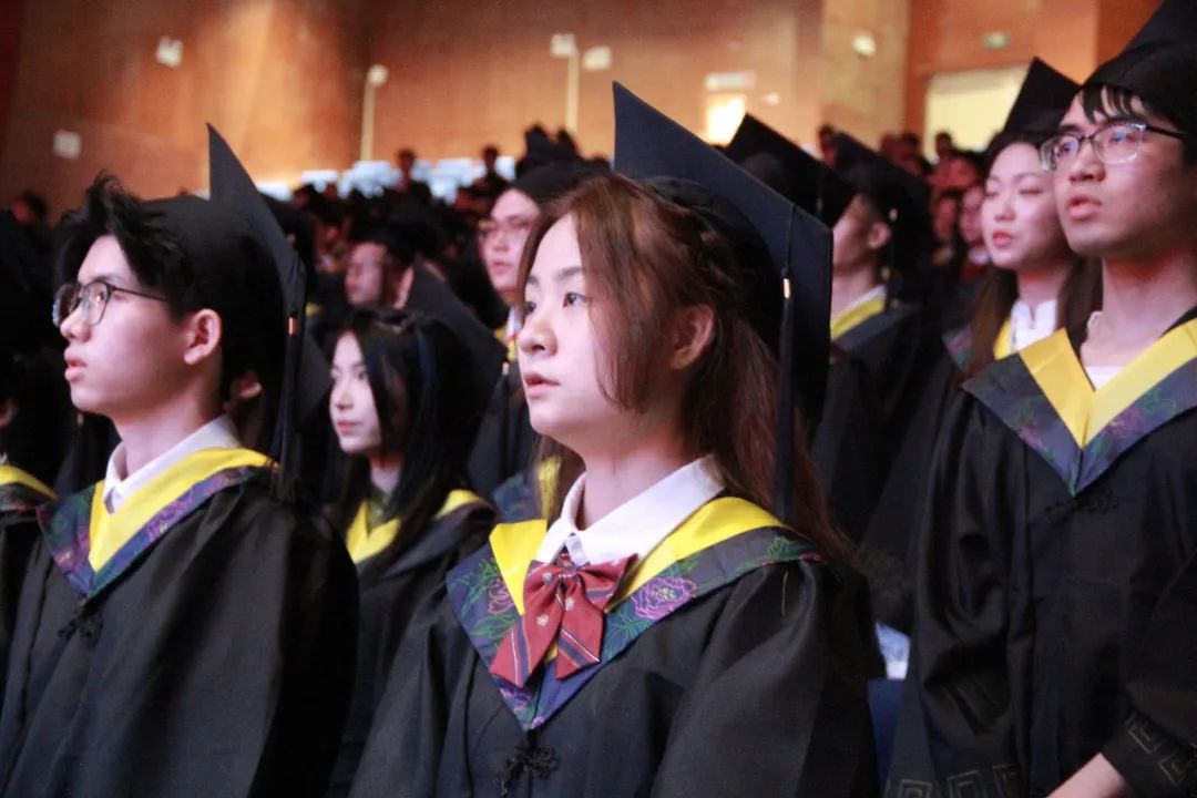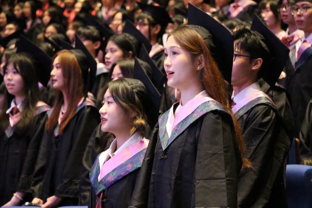 最后,全体毕业生共同唱响校歌,唱尽大学四年的点点滴滴,悠扬婉转的校歌在礼堂久久回荡,学位授予仪式在此刻也圆满落幕。