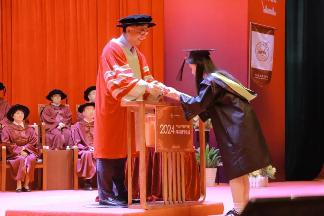 8点30分,学位授予仪式在庄严的国歌声中正式拉开序幕,孙中山先生的训词为远航的学子们致行。