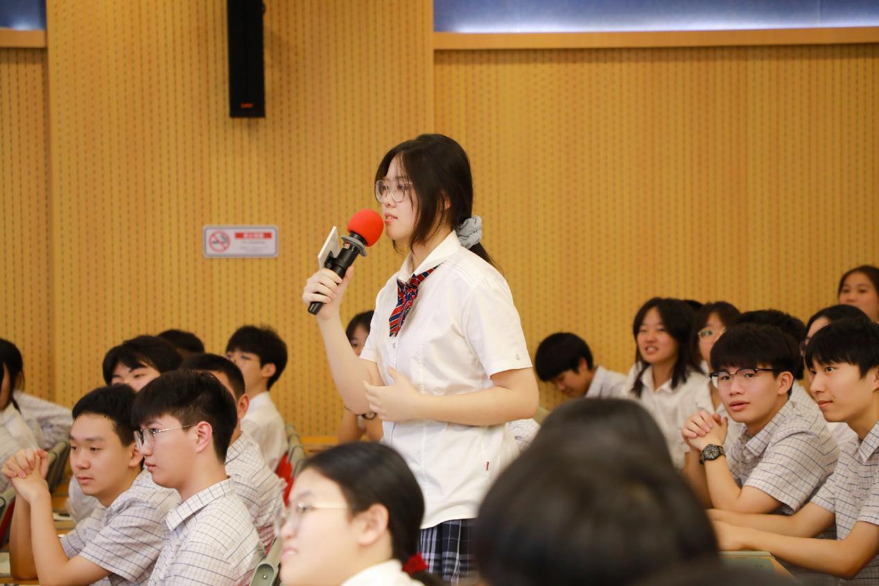 随后,同学们结合所学知识和感兴趣的问题踊跃发言,争相提问。汤涛院士从深厚的数学知识积累出发,结合同学们的学习生活实际一一解答,并勉励同学们打好扎实的数学基础,培养广泛的兴趣爱好,积极涉猎其他学科领域的专业知识,学习过程中应注重学科交叉融合,赢得了同学们的阵阵掌声,讲座现场气氛热烈。