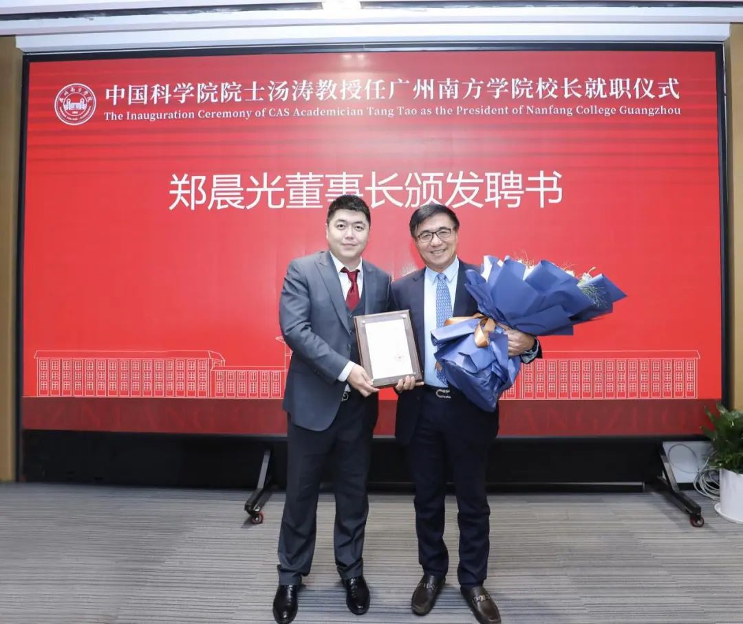 郑晨光董事长对汤涛校长到任表示热烈欢迎,对汤涛院士精湛的学术造诣和卓越的管理能力表示由衷钦佩,希望学校全体校领导在汤涛校长的带领下,以学校教育事业发展为己任,恪尽职守、团结奋进,共创辉煌。