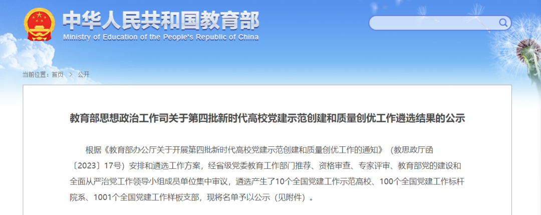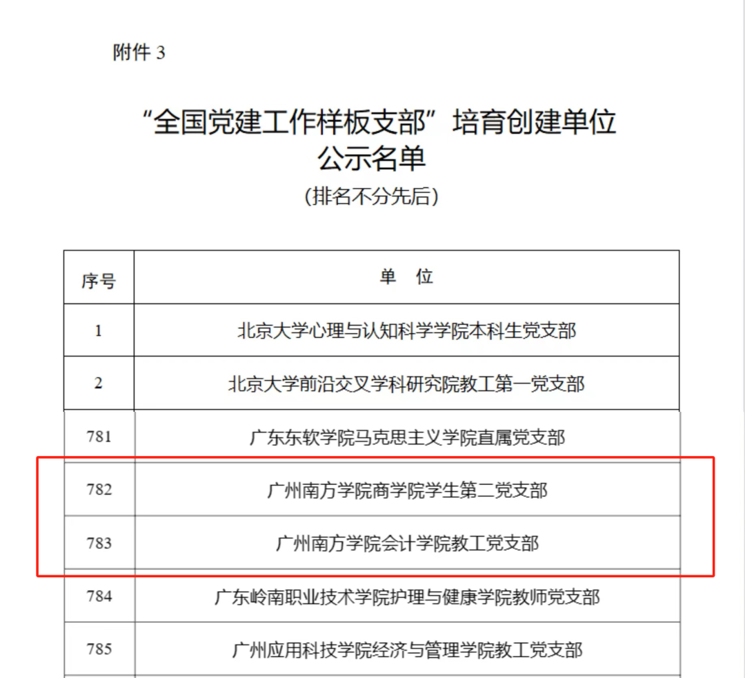 近日,教育部思想政治工作司发布《关于第四批新时代高校党建示范创建和质量创优工作遴选结果的公示》,beat365商学院学生第二党支部、会计学院教工党支部入选“全国党建工作样板支部”培育建设单位。