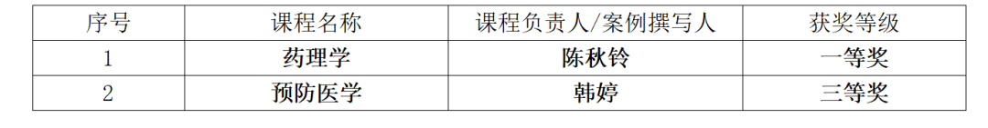2023 年“新医科”视域下课堂思政案例获奖名单