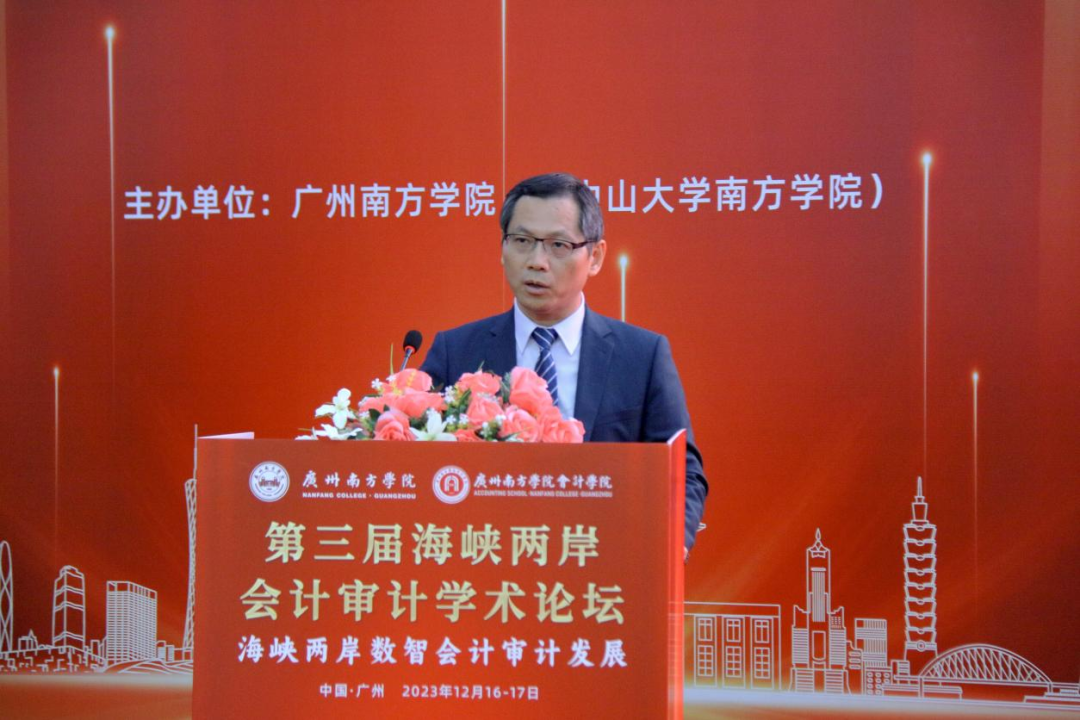卢文民教授致辞认为,数智化已成为当今世界的重要发展趋势,它改变了会计审计的工具和方法,使其更为高效准确。在此背景下,海峡两岸的会计审计学术交流尤为重要。他希望通过此次学术交流,共同探讨数智技术在会计审计工作中的运用,共同探索会计审计领域的新认知和新趋势,为两岸的会计审计学术交流开启新篇章。