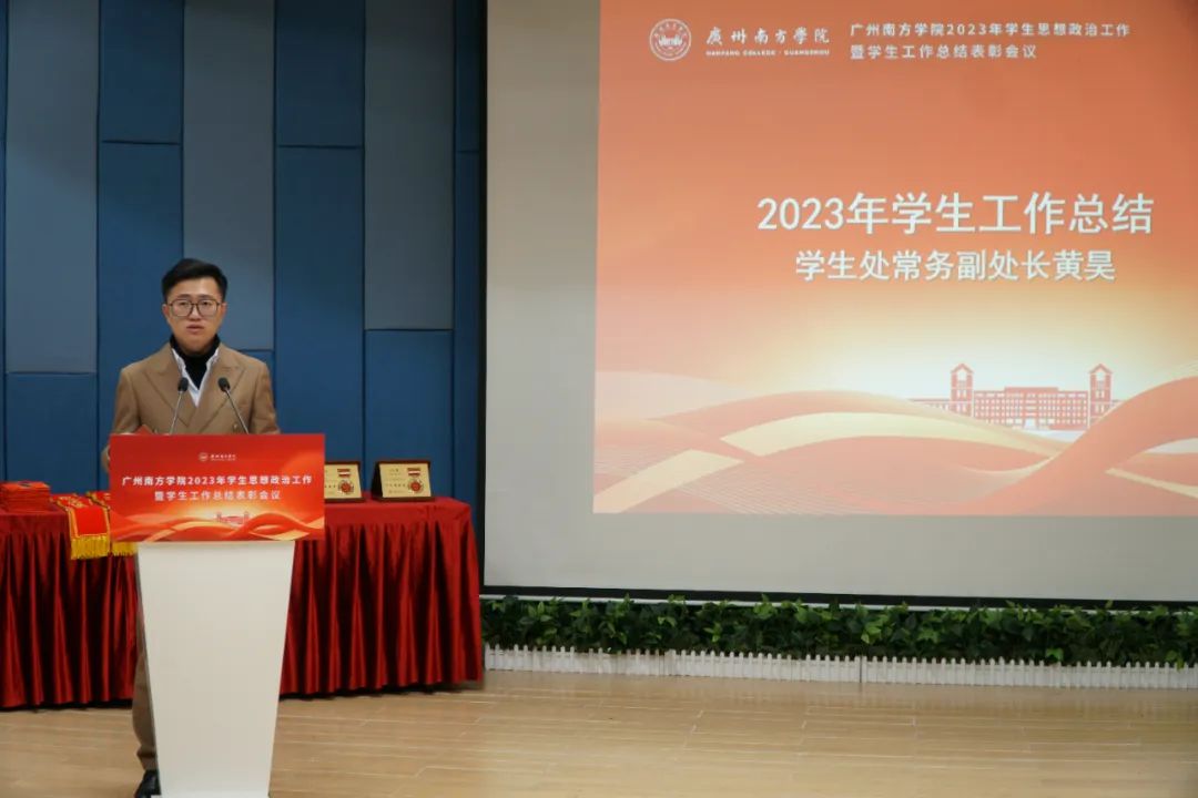 学生处常务副处长黄昊作2023年学生工作总结。他指出,2023年是学生工作提质升级的关键一年,学工系统以队伍建设和学生成长为抓手,在学工队伍建设、学生成长工作、学生工作高质量发展等3个方面取得一系列成效。他强调,新的一年,学工系统要结合本科合格评估有关要求,把工作扎扎实实地做好,努力打造“五好”学工队伍,实现队伍“配齐、建强、优化”的目标,努力当好学生知心人、引路人。