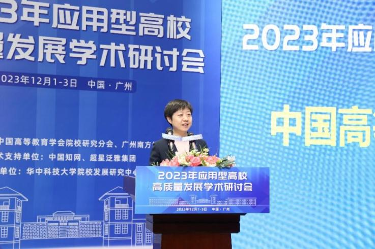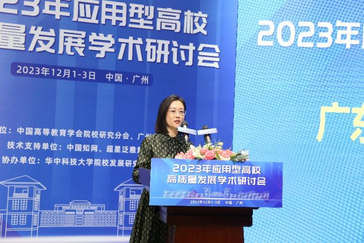 广东省教育厅高等教育处处长姜琳教授介绍了广东省高等教育的基本情况。她指出,近年来广东深入推进新工科、新医科、新文科、新农科四新建设,不断提高人才自主培养质量。她希望以本次研讨会为契机,进一步促进我省应用型高校与全国高校的交流互动,共同推进我国高等教育事业高质量发展。