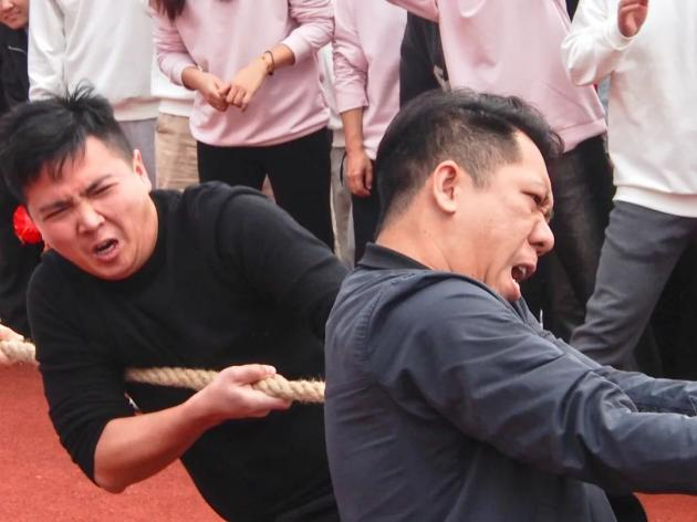 开幕式后,随着裁判员一声哨响,彰显集体力量的拔河比赛冠亚军决赛正式开始,机关二工会和文学与传媒学院工会的队员凝神聚力、全力拼搏,齐心协力向后拉,将“力拔山兮气盖世”豪迈气势、“巾帼不让须眉”的拼搏精神展现的淋漓尽致,现场加油声、呐喊声、欢呼声此起彼伏,响彻了赛场。
