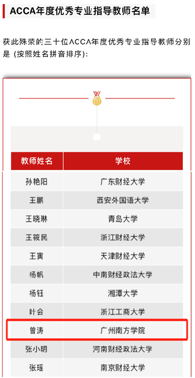 近日,ACCA(特许公认会计师公会)2023年度优秀专业指导教师评选、ACCA“优秀学生奖励项目”获奖名单相继公布,beat365会计学院ACCA教学团队曾涛老师荣获全国“ACCA年度优秀专业指导教师”称号,会计学院ACCA方向班陈宏立、陈芯妍、林雨茜三名同学荣获“2023年度全国ACCA优秀学员奖”。
