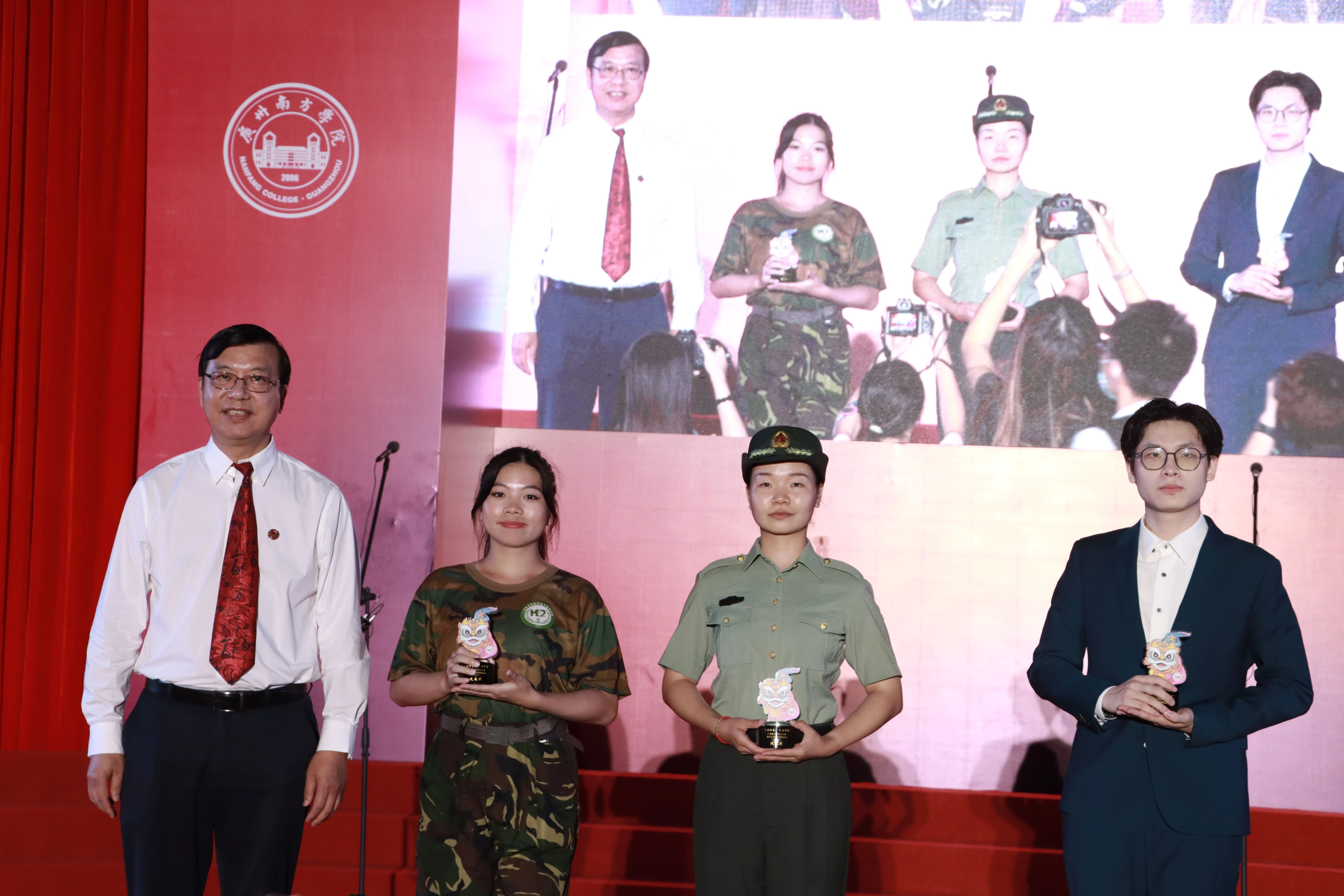 黄南松副校长为获”风采奖“军训团颁奖(卢璇 摄)
