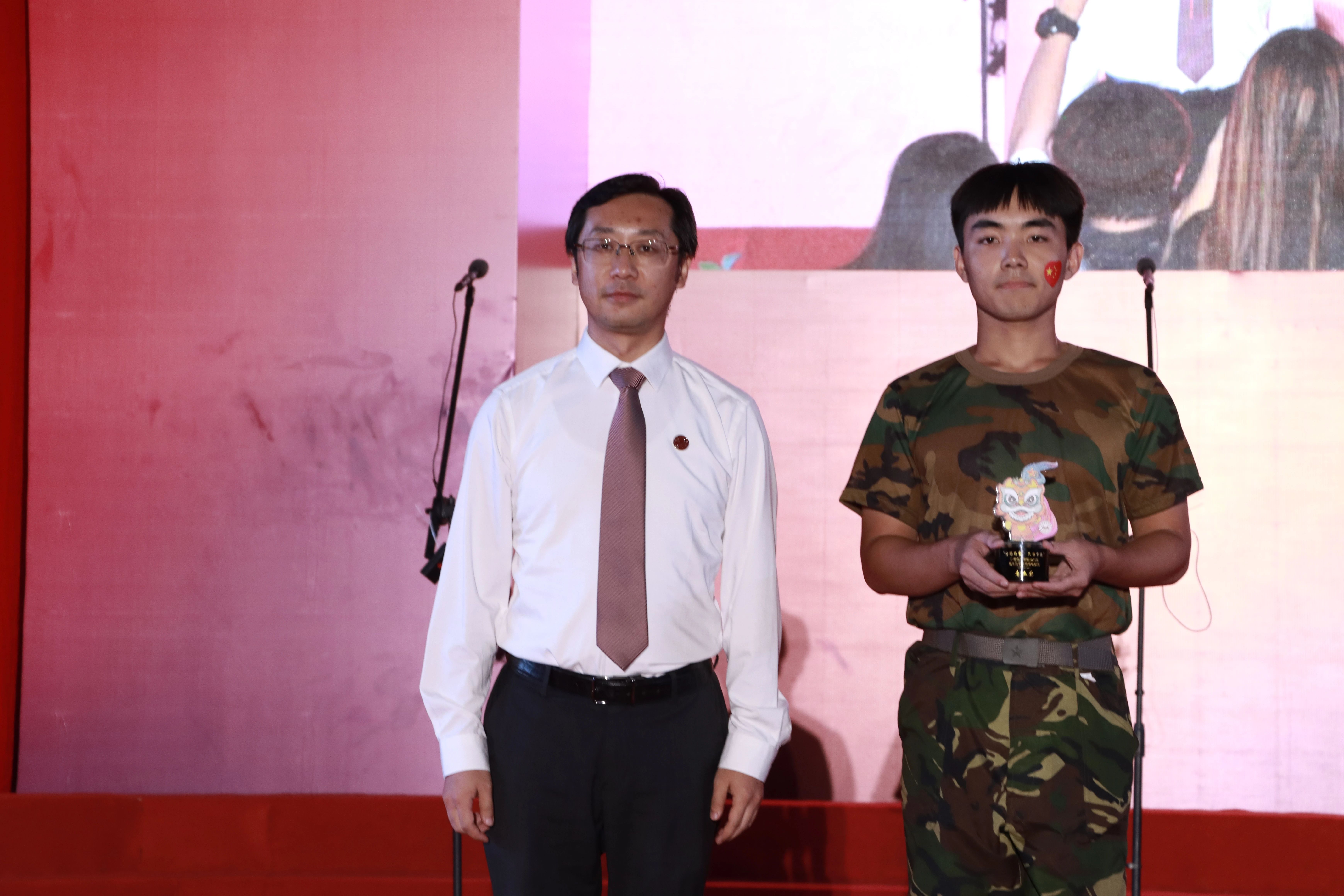黄南松副校长为获”表演奖“军训团颁奖(卢璇 摄)