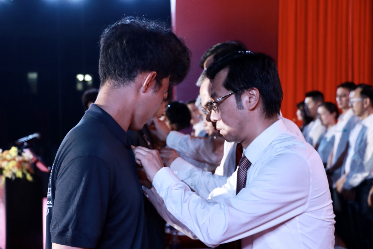 植秀聪副书记、副校长为获”组织奖“军训团颁奖(卢璇 摄)