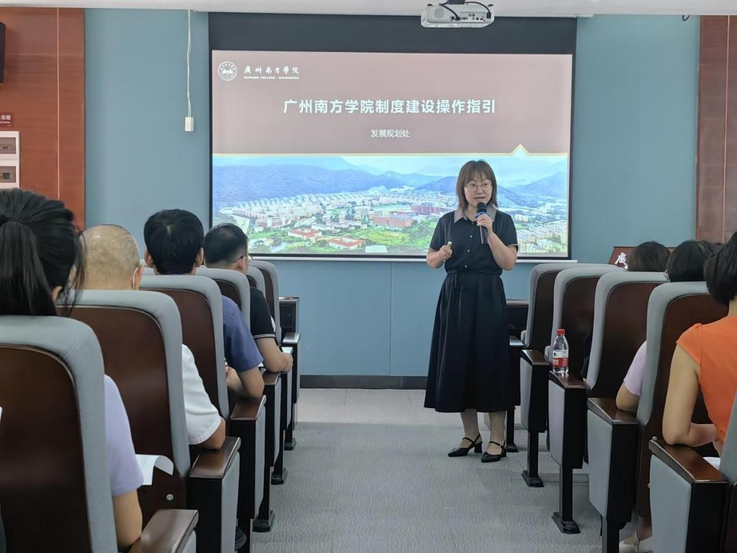随后,发展规划处副处长田丽对接下来制度建设工作进行了简要介绍,并表示为进一步健全学校管理制度,优化制度建设工作流程,提高制度建设效率,发展规划处初步拟定了《beat365正版唯一官网制度建设管理规则(草案)》及《beat365正版唯一官网制度建设操作指引》广泛征求大家意见,后续学校将据此加快推动未发布制度尽快通过审核并出台。此外,她就教育事业统计工作进行了总体部署,并由发展规划处黄巧老师对该项工作的相关要求和注意事项进行了详细讲解。