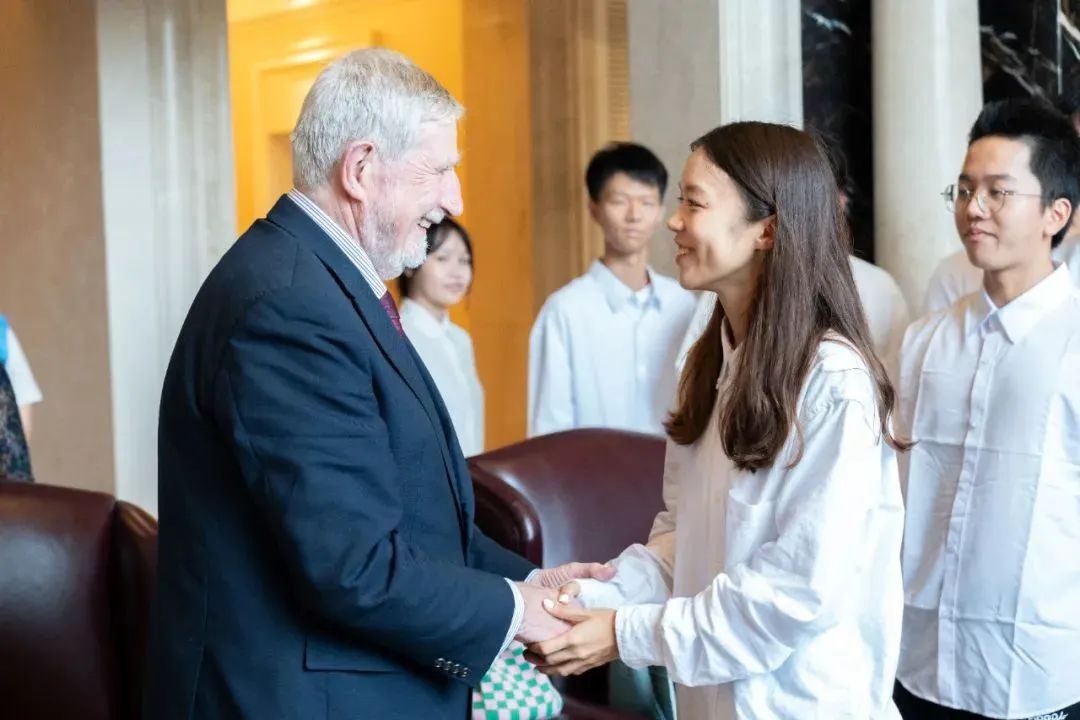 会后,双方互赠礼物并合影。德尔米德·赫格提和凯文·盖根为2023级中爱合作办学项目新生颁发录取通知书,与新生代表亲切互动。