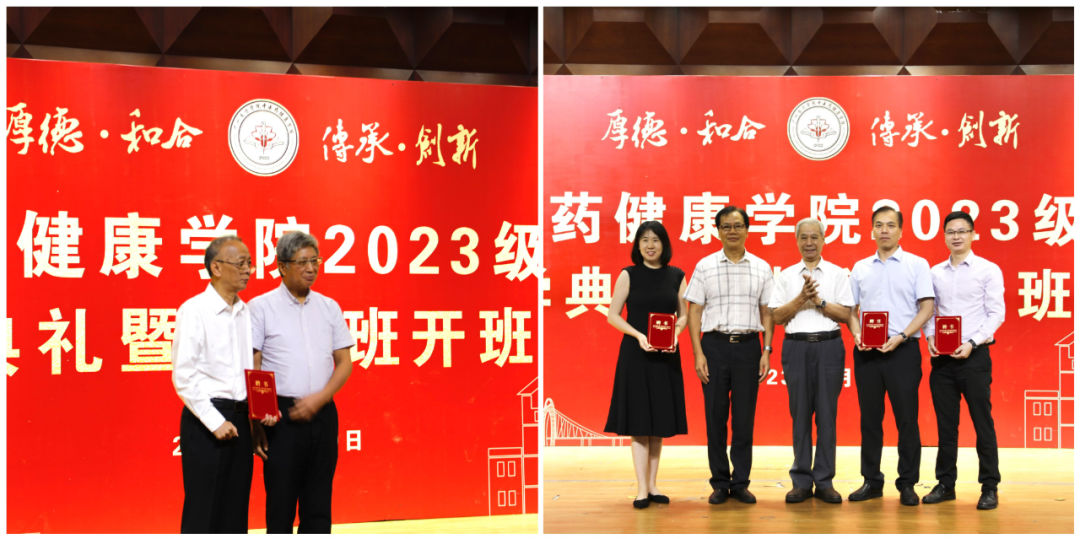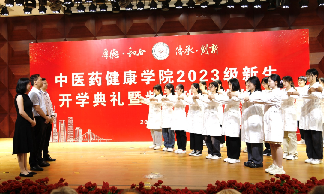 典礼上公布了中医药健康学院院徽及院训,期望学院师生秉承厚德和合,传承创新的院训,争做中医药高质量发展的推动者。
