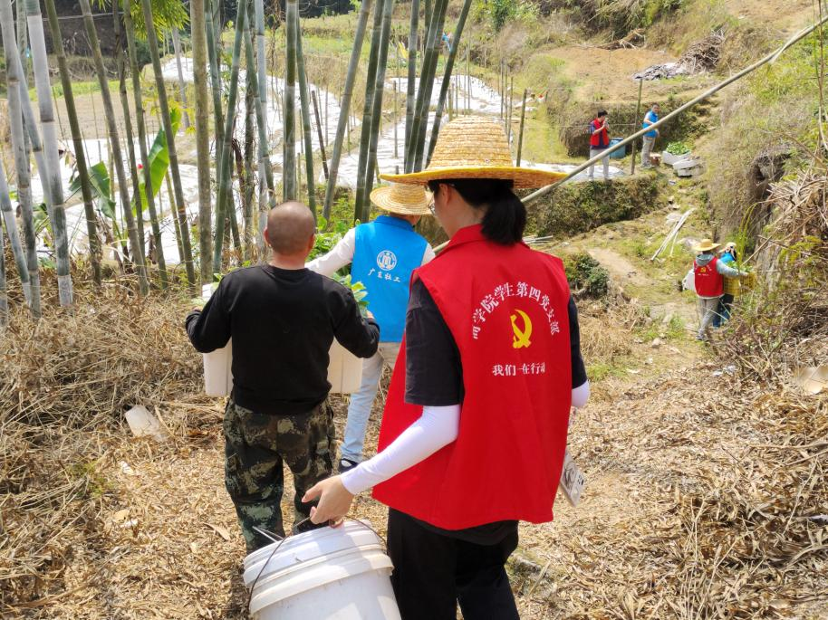 推进实践育人。以学习贯彻习近平总书记在广东考察时重要讲话精神为引领,聚焦“百县千镇万村高质量发展工程”,组建“旅游产业发展与乡村振兴”等师生科研团队,深入温泉镇10个村进行调研,开展10余场科普知识、电商销售、民宿特色经营等专题讲座,100多场次线上科普讲座,惠及1.2万余人。组建4个师生团队,为从化区鳌头镇“越秀风行国家级田园综合体”项目持续进行专题设计,把论文写在大地上,为乡村振兴赋能。选派15名学生赴尼泊尔任国际中文教育志愿者,将中国故事和中国声音带到喜马拉雅南麓,为促进中尼两国文化交流做出贡献。师生走出课堂、深入农村,实现了高校资源优势同乡村振兴有效衔接,育人育才与地方经济发展同频共振。