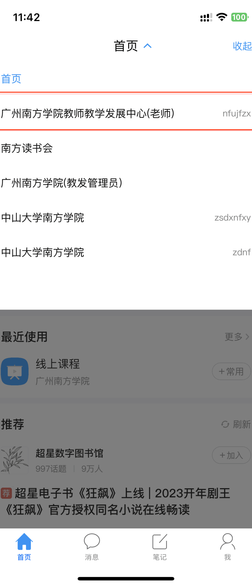 超星学习通APP移动端页面