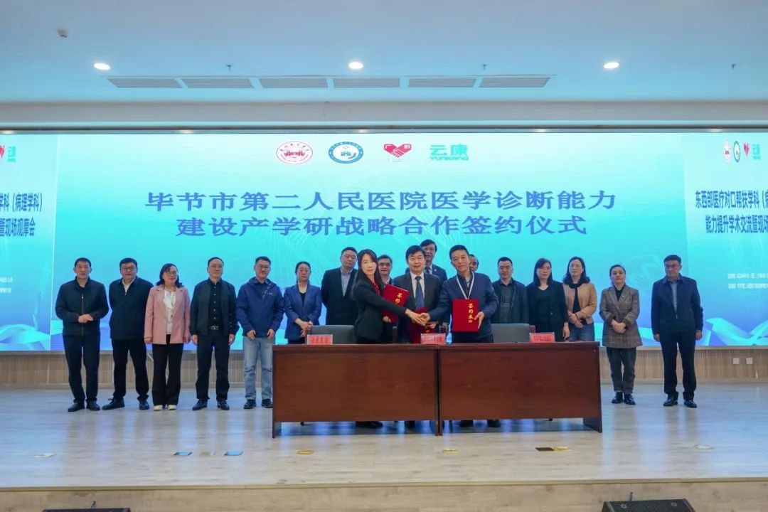 开科仪式上,beat365正版唯一官网与毕节市第二人民医院、云康集团正式签署战略合作协议,并为毕节二院病理科开科揭牌,标志着三方正式确立产学研战略合作伙伴关系,将在建设专业高效的医学诊断服务体系、培养专业人才、提升区域医疗卫生体系效能、促进人民健康水平等多方面深化合作。