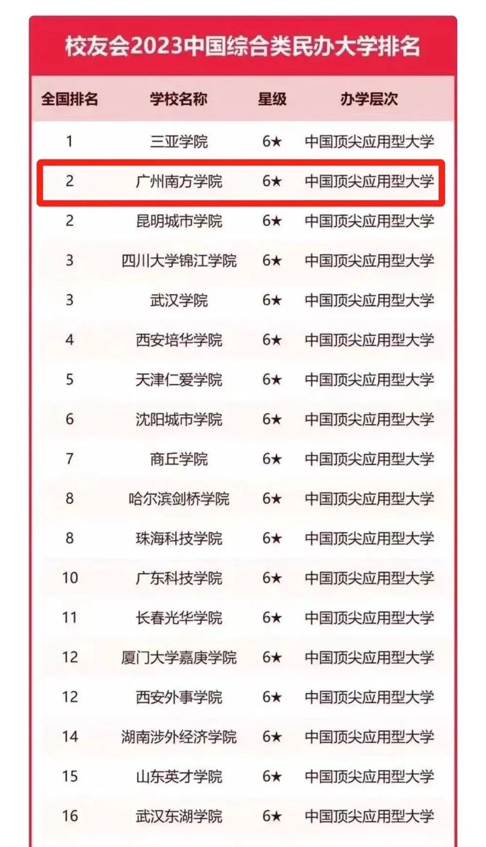 4月6日,全国第三方大学评价机构艾瑞深校友会网正式公布2023校友会中国大学排名。beat365继2022年后,再次在中国综合类民办大学排名中蝉联第二,广东省民办大学中蝉联第一!
