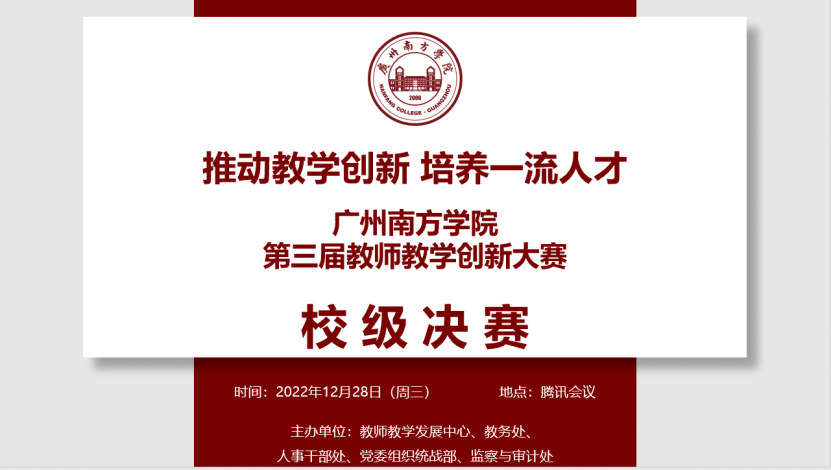 据悉,大赛最终评出一等奖3名、二等奖4名、三等奖5名、优秀奖6名。根据比赛结果,学校将推荐荣获3个组别第一名的教师或教师团队代表学校参加广东省第三届高校教师教学创新大赛。本届教学创新大赛围绕着学校的师资建设战略,通过以赛促教,以赛促学,以赛促改,以赛促建,充分发挥了优秀教师、优秀课程的示范引领作用,有效打造了教师教学创新展示与交流平台,从而达到加强师资队伍建设的目的。